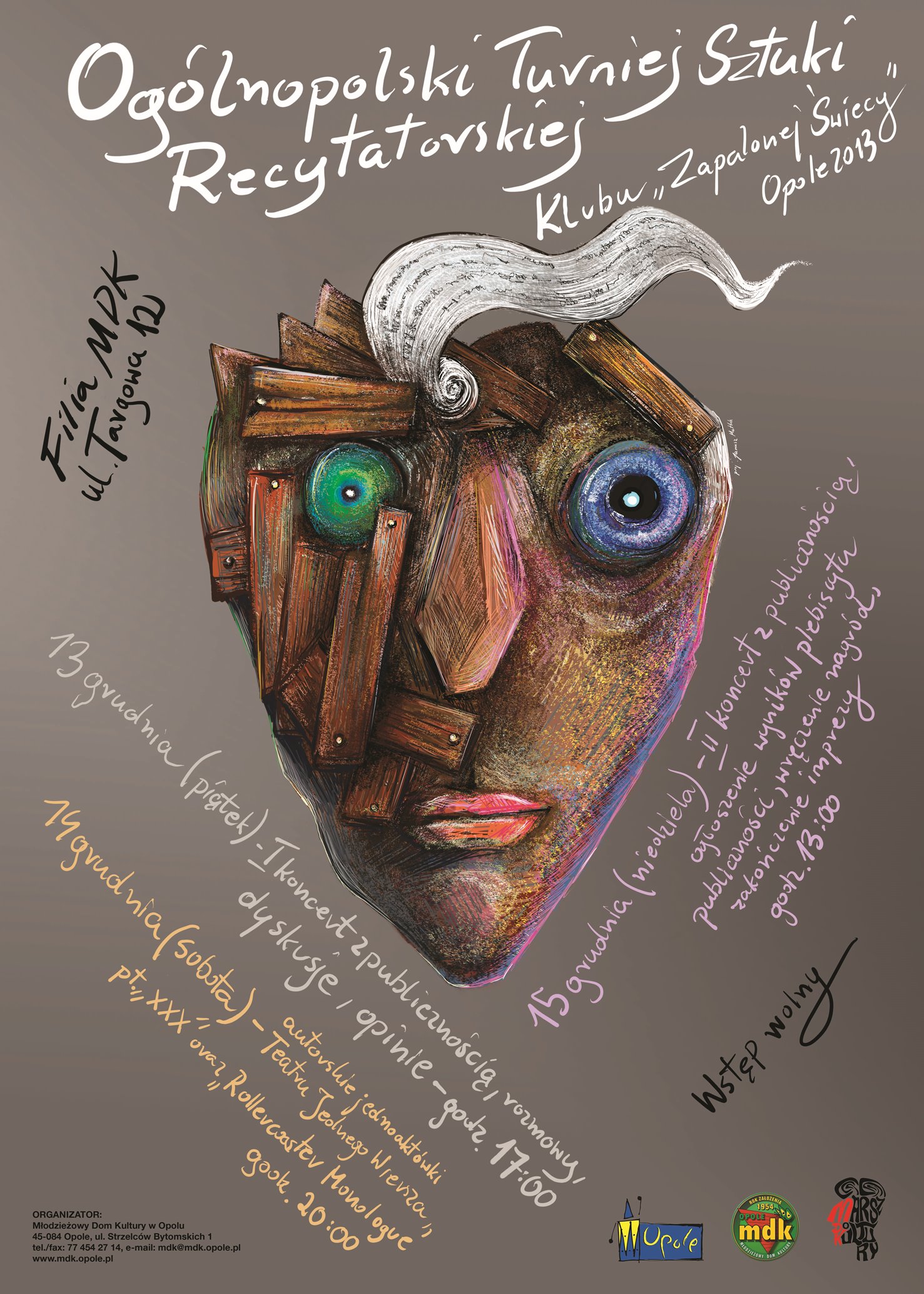 Młodzieżowy Dom Kultury w Opolu oraz Społeczne Towarzystwo Artystyczne zapraszają wszystkich miłośników żywego słowa na tegoroczny finał Ogólnopolskiego Turnieju Sztuki Recytatorskiej Klubu Zapalonej Świecy. Trzydniowa impreza rozpocznie się w najbliższy piątek, 13 grudnia, w filii MDK przy ul. Targowej. Oto szczegóły programu.