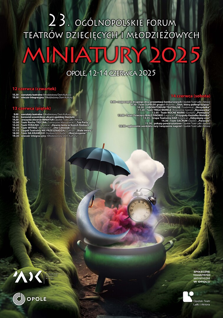 Już w najbliższy czwartek (12 czerwca) startuje w Opolu 23. edycja Ogólnopolskiego Forum Teatrów Dziecięcych i Młodzieżowych MINIATURY 2025. Przez trzy dni Stolica Polskiej Piosenki gościć będzie prawie dwustu młodych adeptów sztuki aktorskiej z całego kraju. Świetnych spektakli, dobrej zabawy i słonecznej pogody na pewno nie zabraknie!