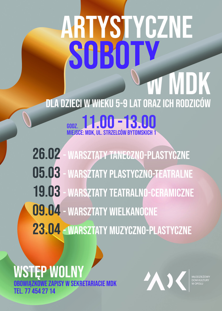 Już w najbliższą sobotę (26 lutego) rusza kolejna edycja "Artystycznych sobót w MDK", czyli cyklu bezpłatnych warsztatów dla dzieci w wieku 5-9 lat oraz ich rodziców.