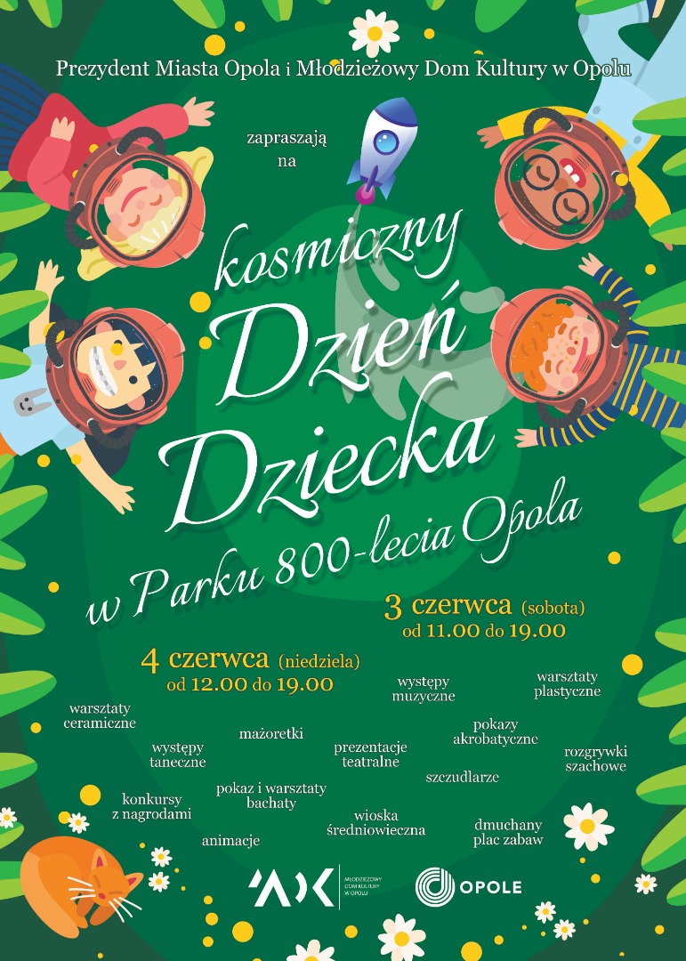 12:00-19:00 - kosmiczny festyn rodzinny: występy taneczne i muzyczne, prezentacje teatralne, mażoretki, szczudlarze, warsztaty plastyczne i ceramiczne, rozgrywki szachowe, pokaz i warsztaty bachaty, animacje, konkursy z nagrodami, dmuchany plac zabaw