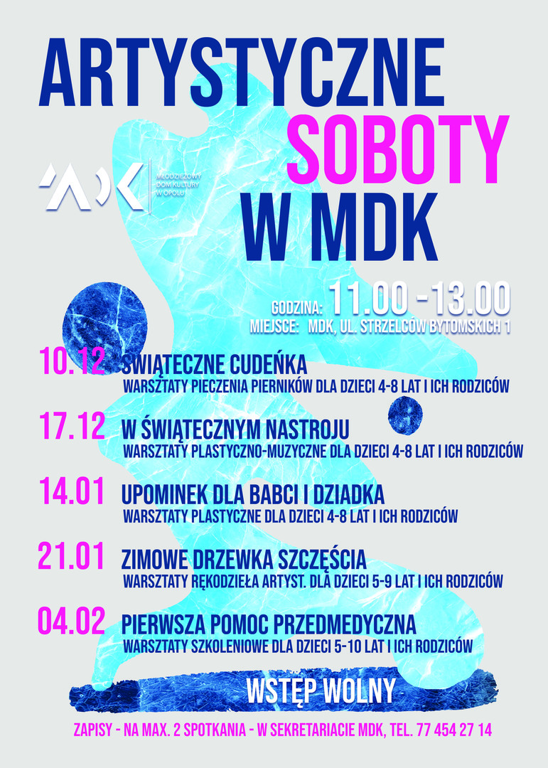 Obowiązkowe zapisy (na max. 2 spotkania) - w sekretariacie MDK, ul. Strzelców Bytomskich 1, tel. 77 454 27 14.