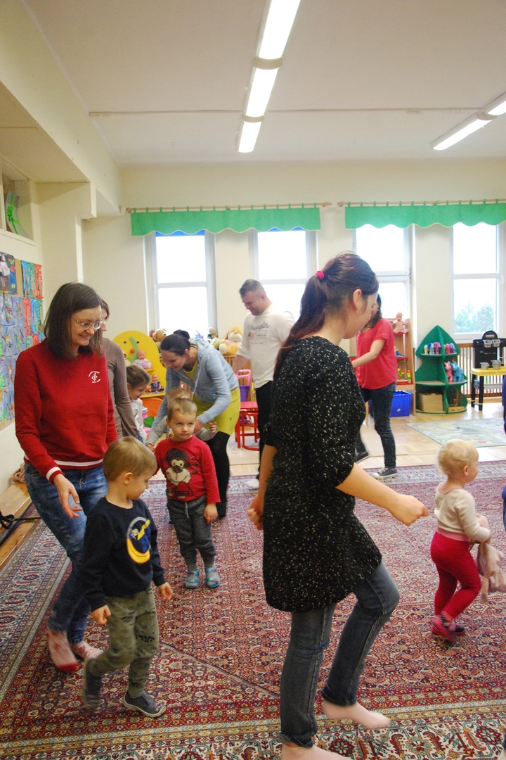 Warsztaty z udziałem rodziców, realizowane metodą Weroniki Sherborne (13 grudnia 2019, filia MDK przy ul. Skautów Opolskich)