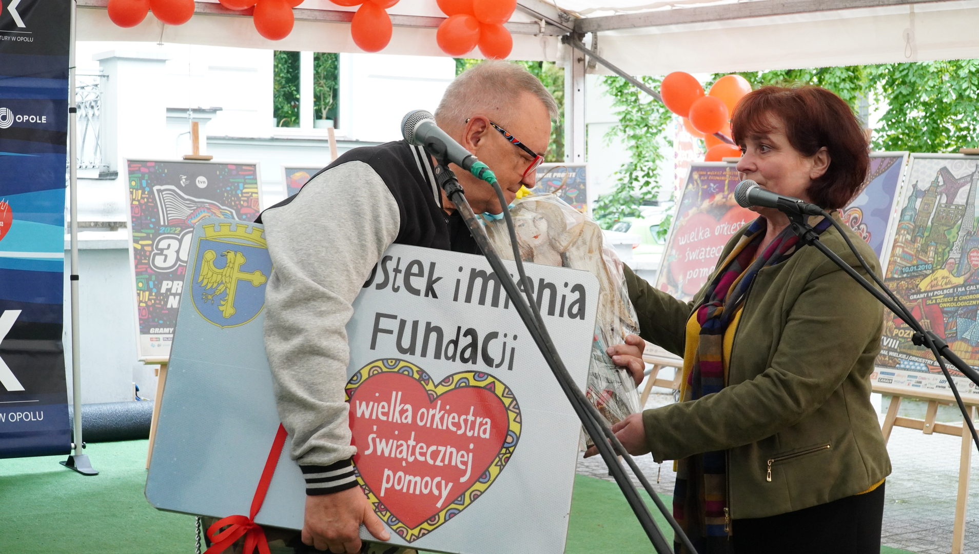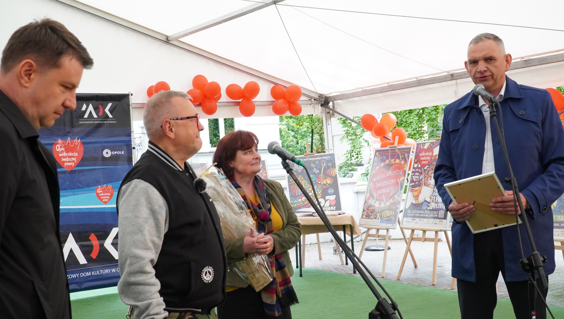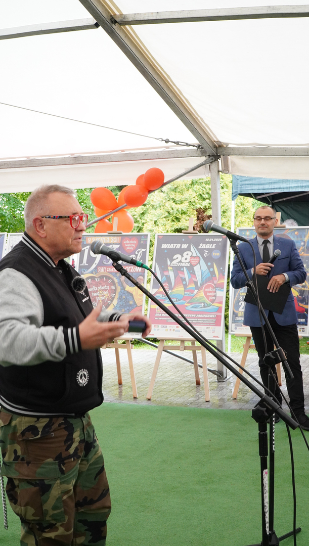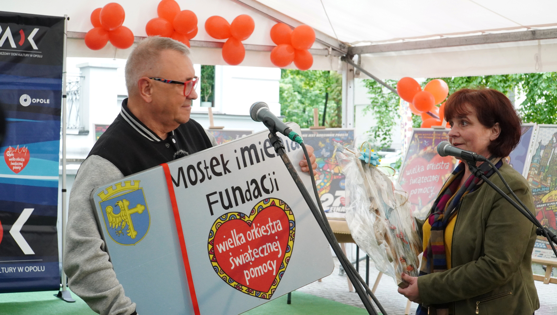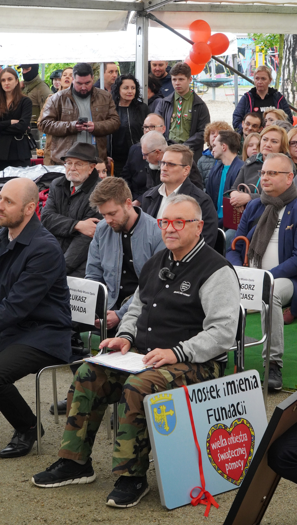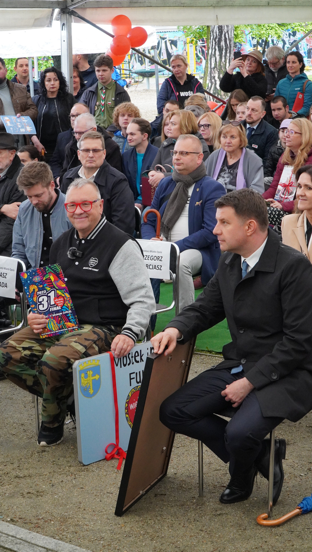Wizyta szefa WOŚP w Opolu z okazji nadania przez Radę Miasta Opola odznaki honorowej "Za Zasługi dla Miasta Opola" Fundacji Wielka Orkiestra Świątecznej Pomocy (17 maja 2023, Mostek im. WOŚP i park MDK)