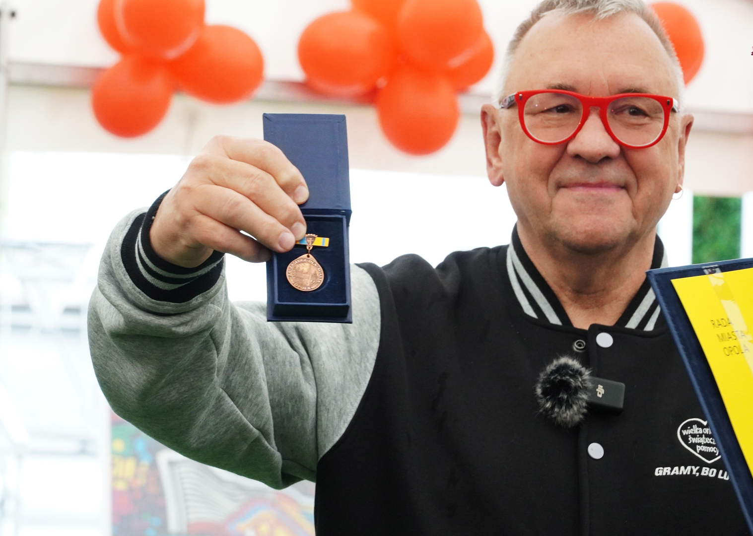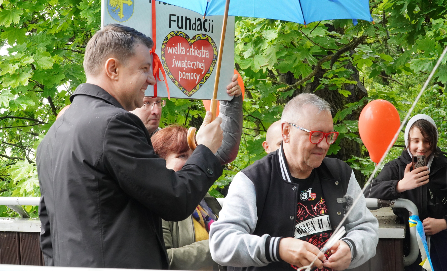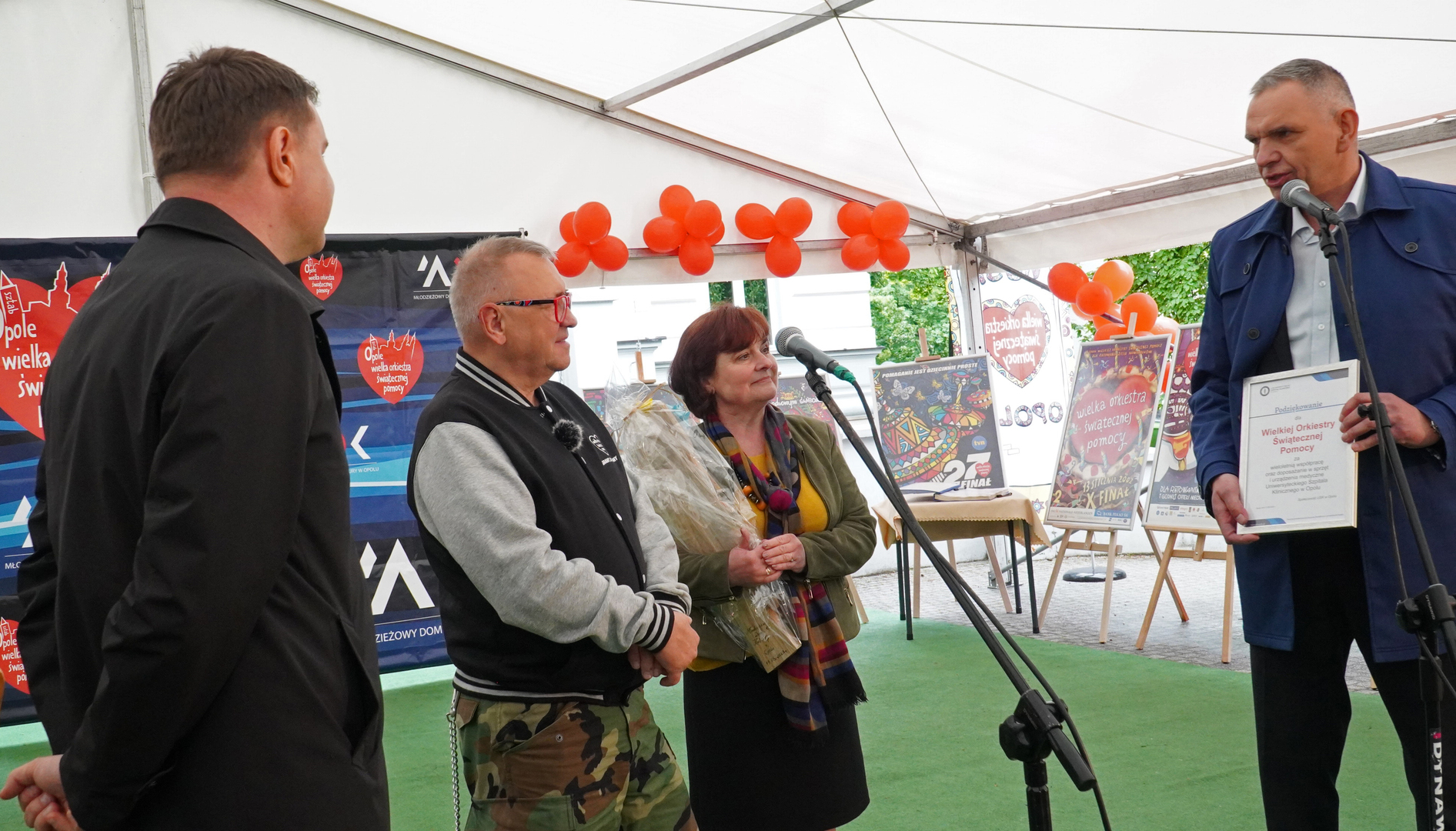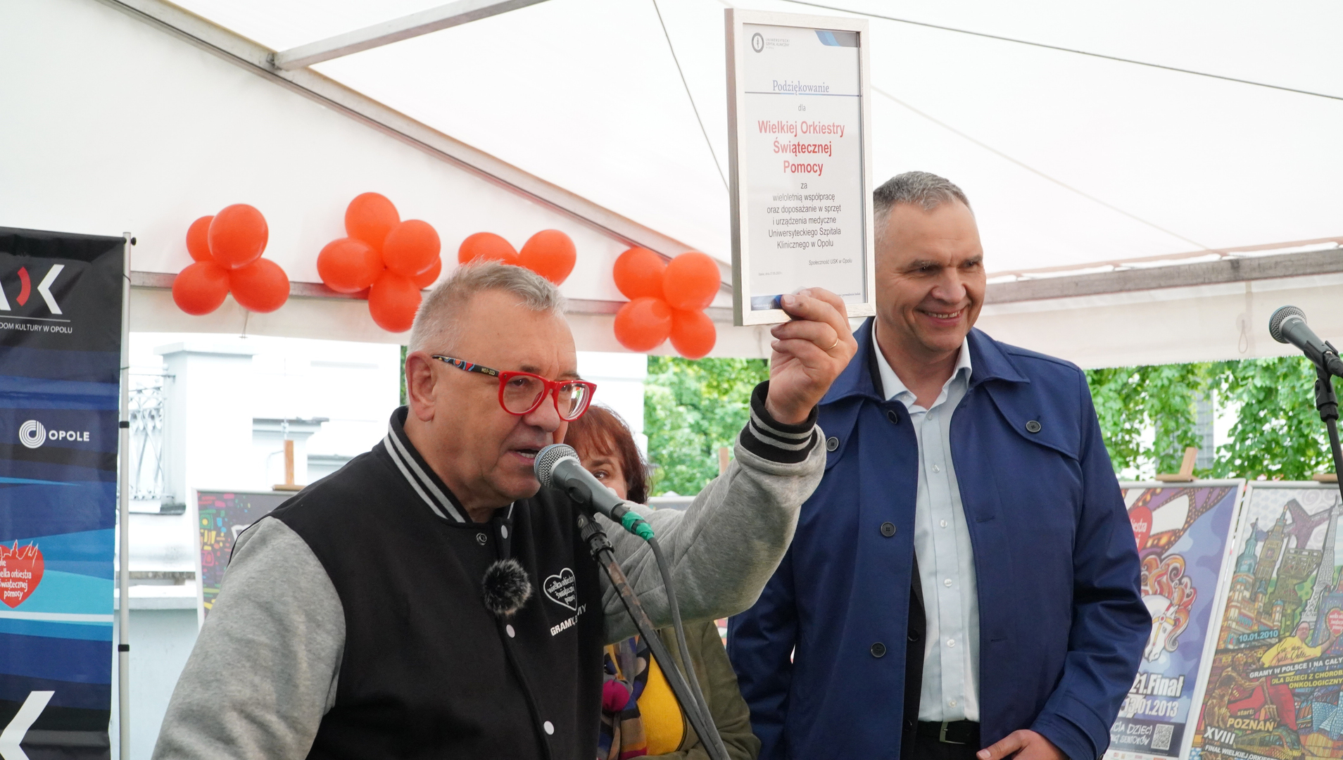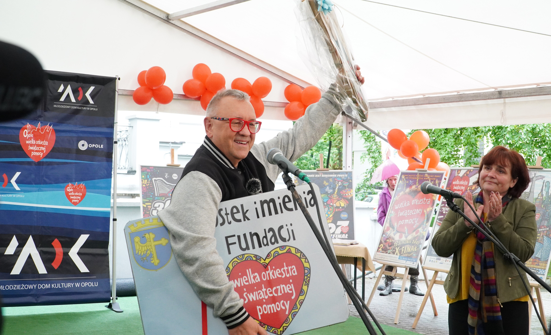 Wizyta szefa WOŚP w Opolu z okazji nadania przez Radę Miasta Opola odznaki honorowej "Za Zasługi dla Miasta Opola" Fundacji Wielka Orkiestra Świątecznej Pomocy (17 maja 2023, Mostek im. WOŚP i park MDK)