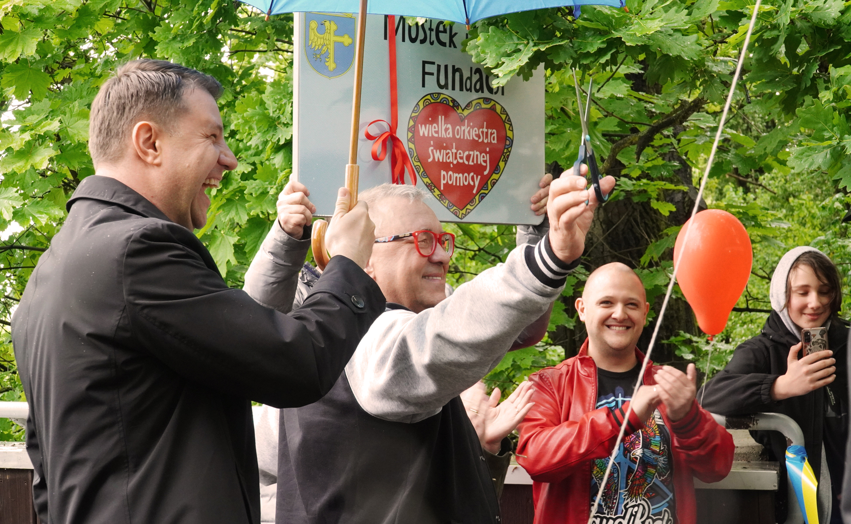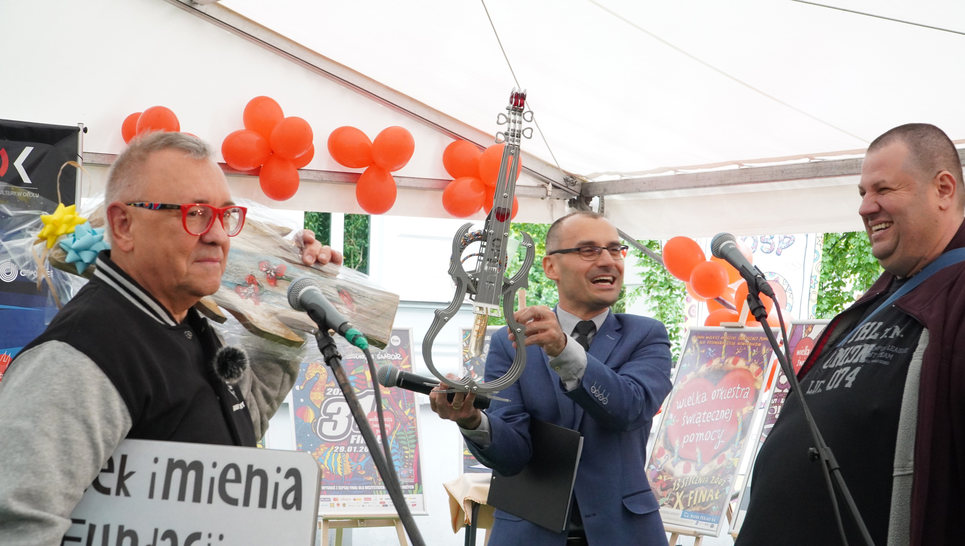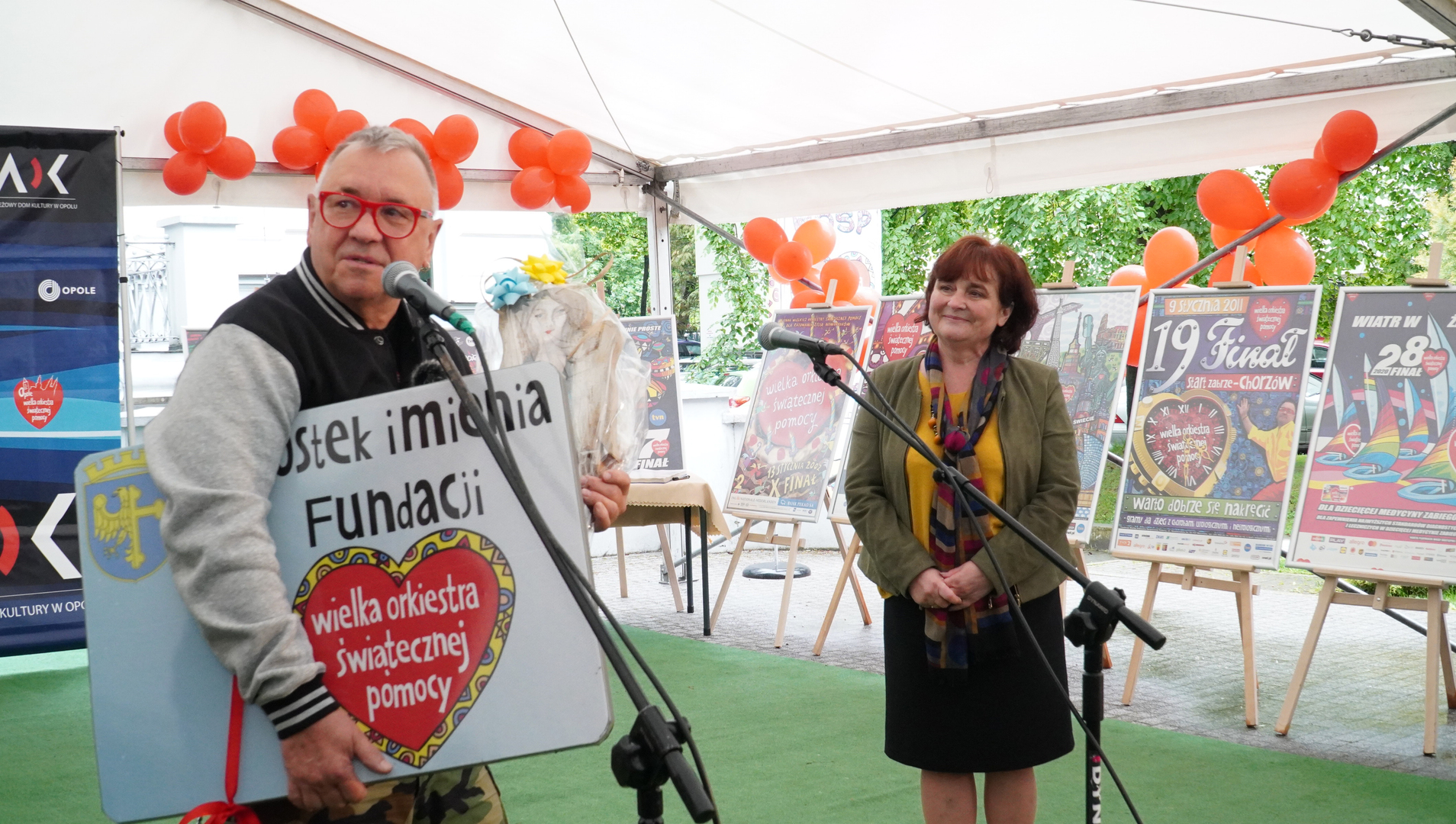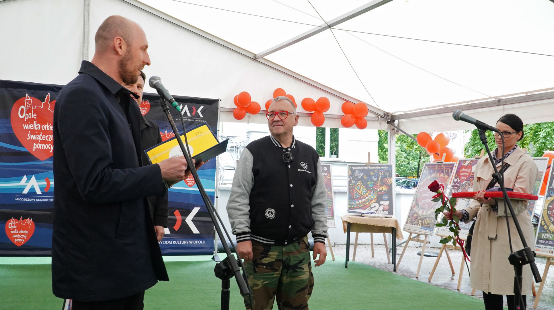 Wizyta szefa WOŚP w Opolu z okazji nadania przez Radę Miasta Opola odznaki honorowej "Za Zasługi dla Miasta Opola" Fundacji Wielka Orkiestra Świątecznej Pomocy (17 maja 2023, Mostek im. WOŚP i park MDK)