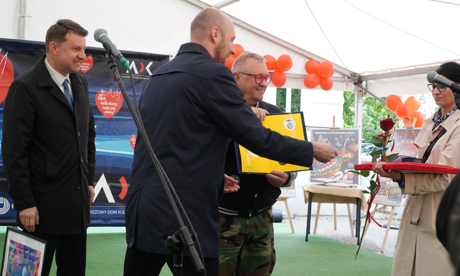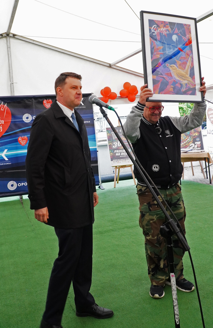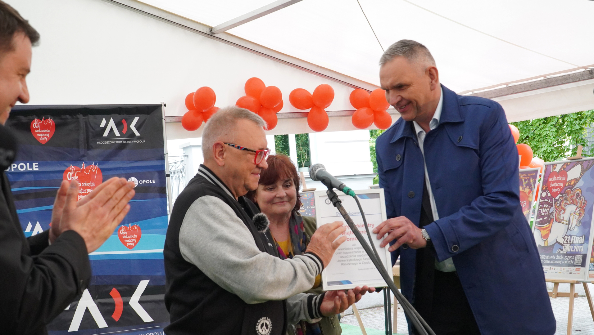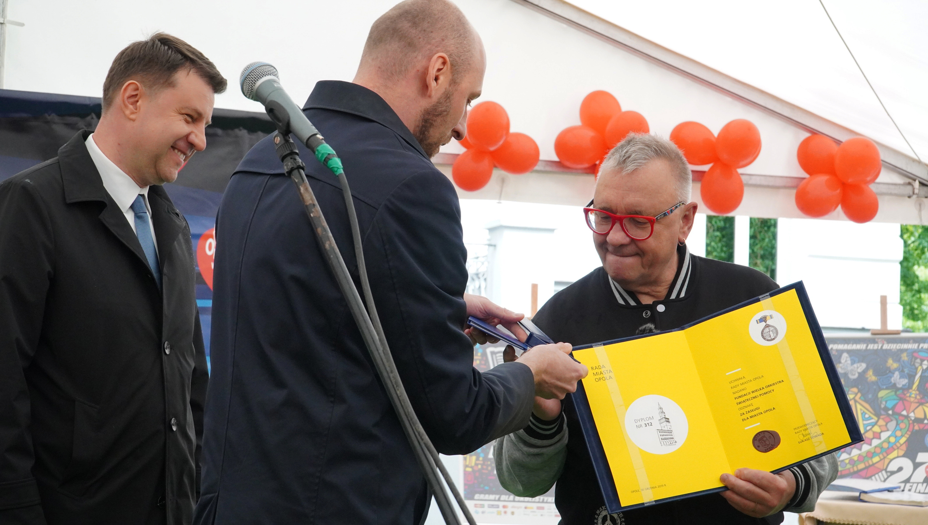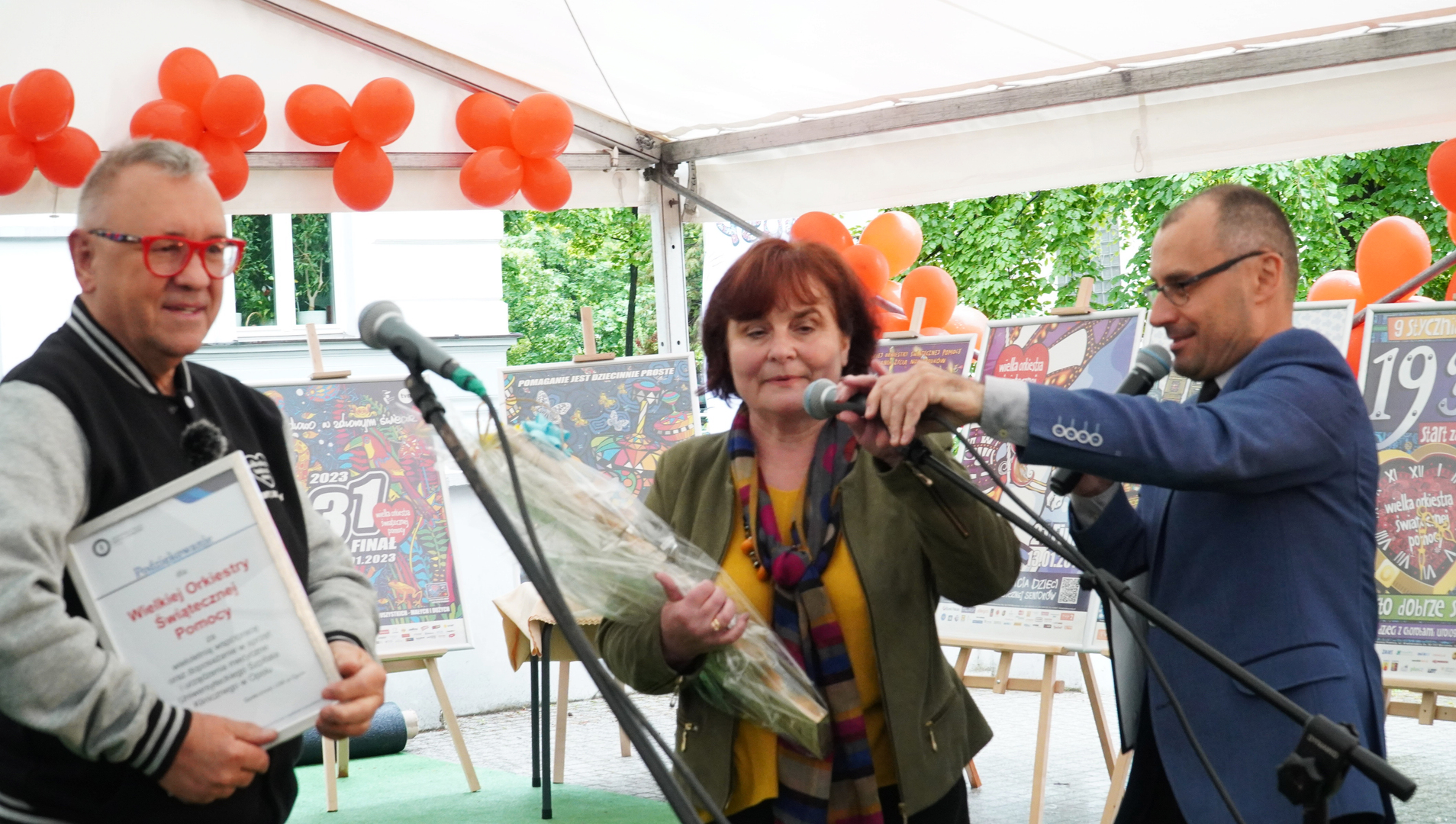 Wizyta szefa WOŚP w Opolu z okazji nadania przez Radę Miasta Opola odznaki honorowej "Za Zasługi dla Miasta Opola" Fundacji Wielka Orkiestra Świątecznej Pomocy (17 maja 2023, Mostek im. WOŚP i park MDK)