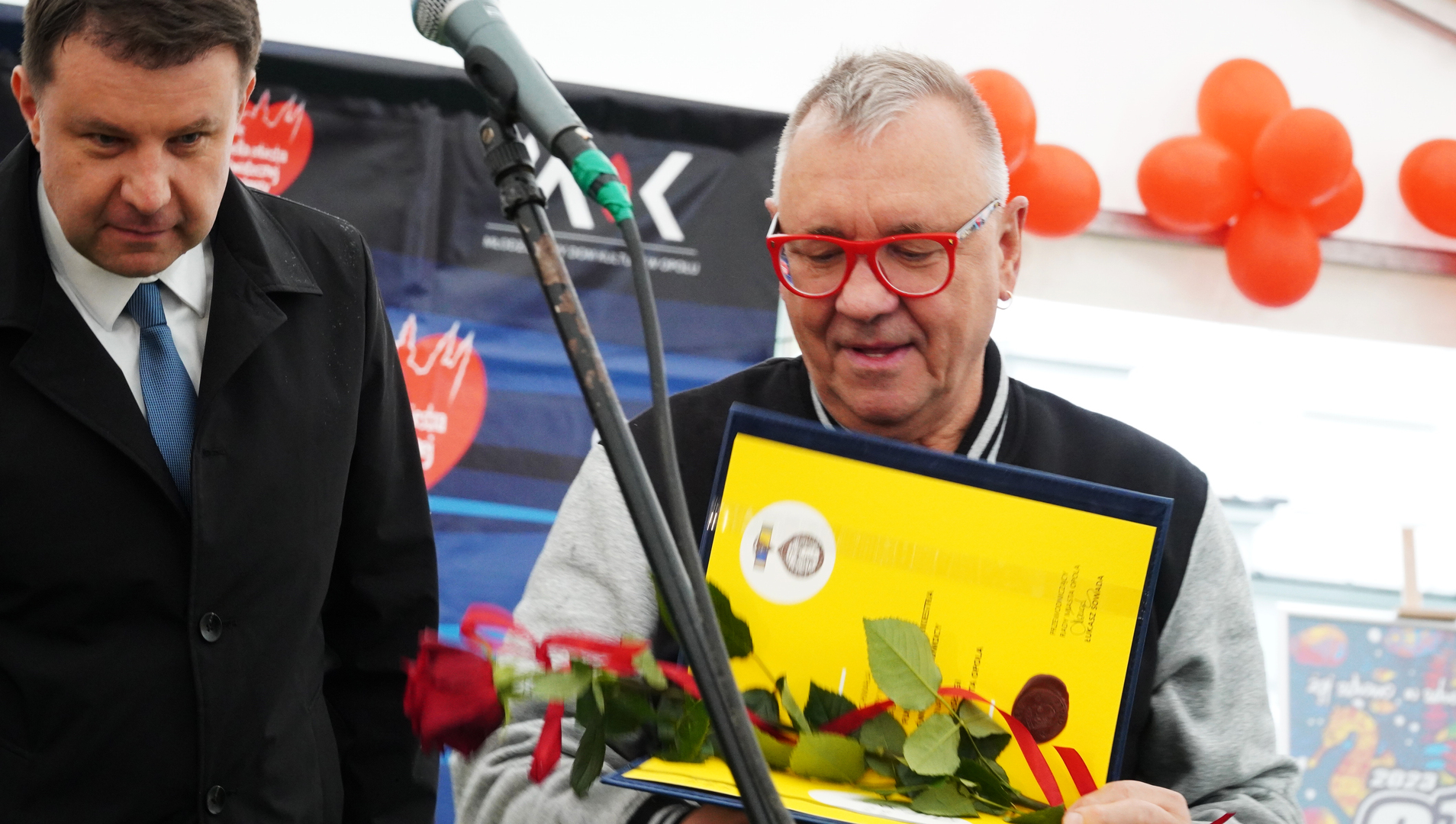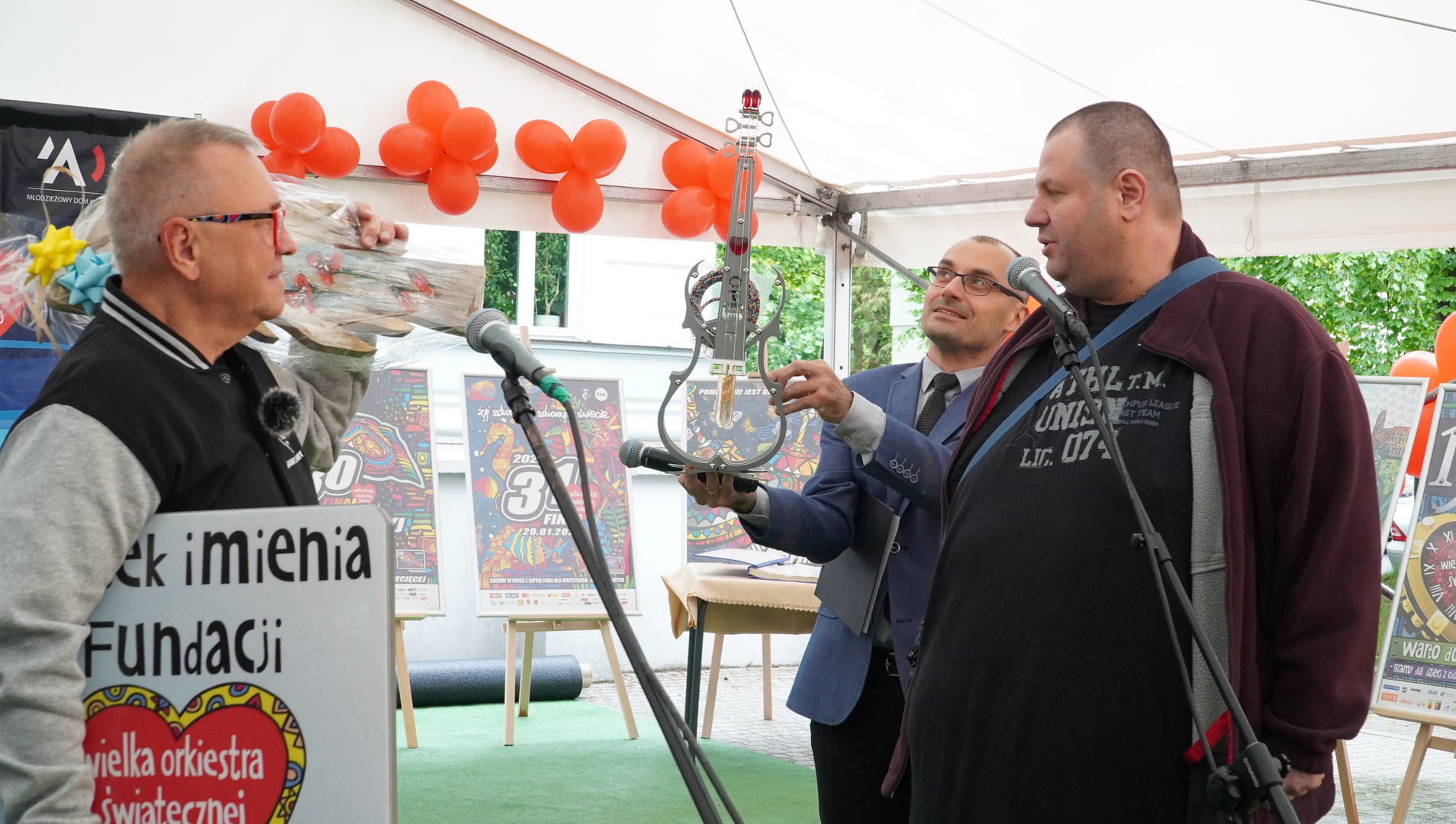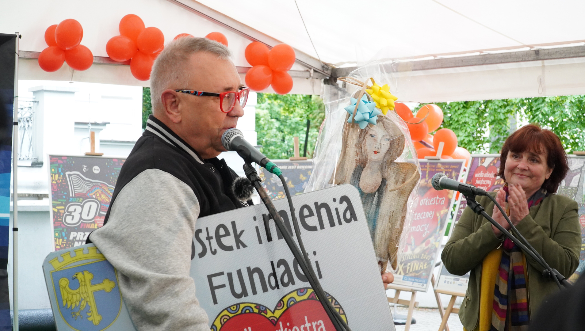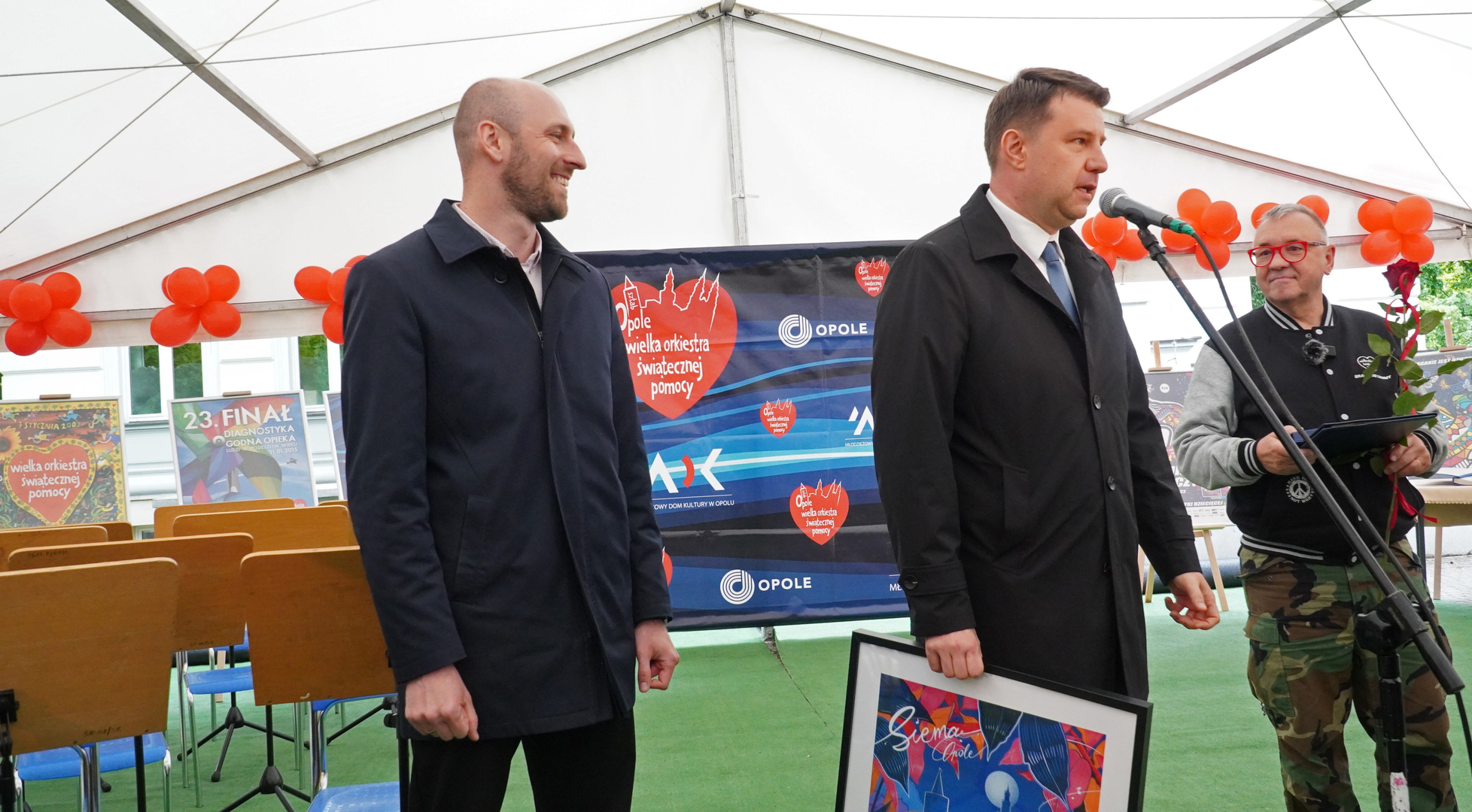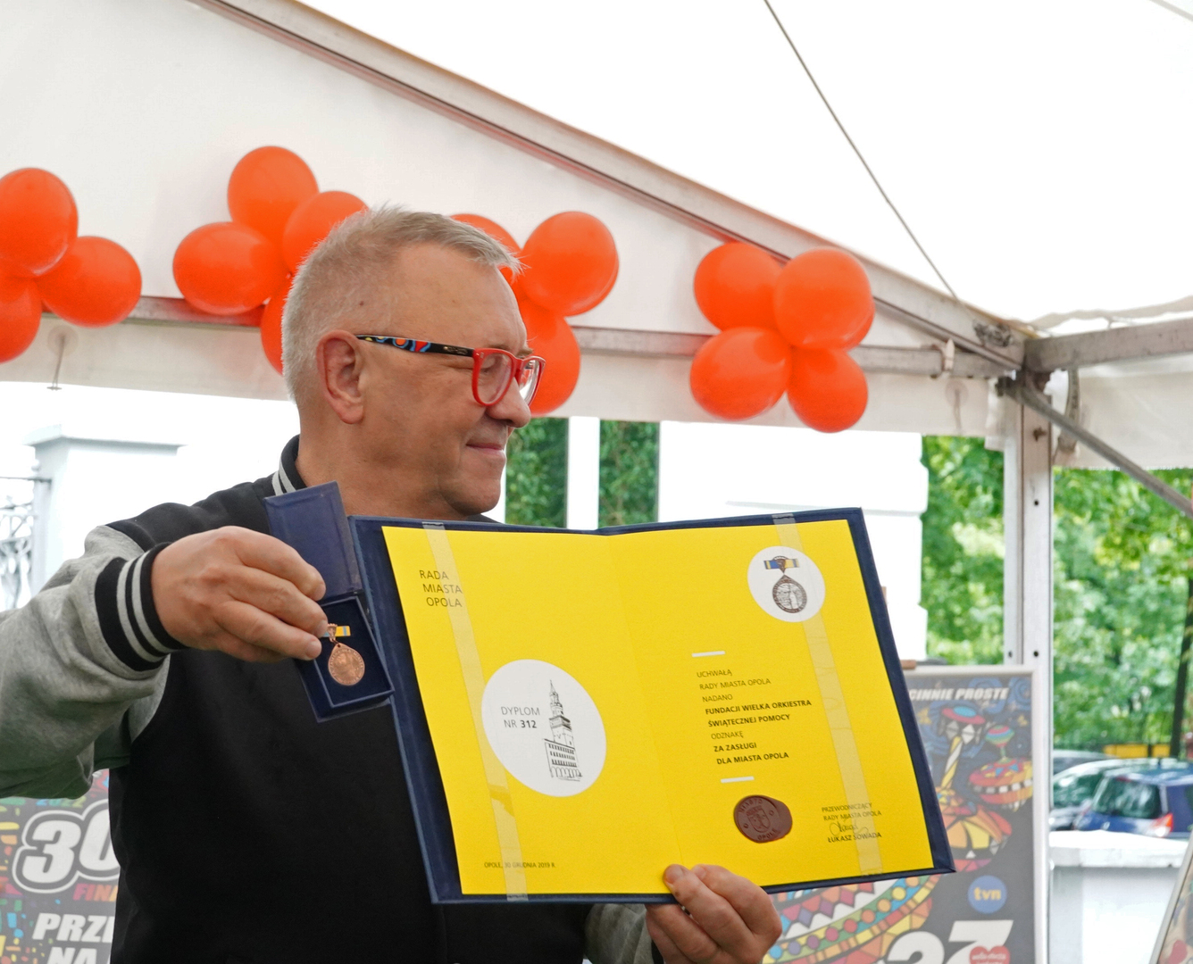 Wizyta szefa WOŚP w Opolu z okazji nadania przez Radę Miasta Opola odznaki honorowej "Za Zasługi dla Miasta Opola" Fundacji Wielka Orkiestra Świątecznej Pomocy (17 maja 2023, Mostek im. WOŚP i park MDK)