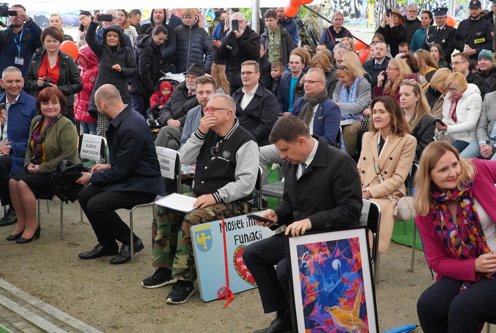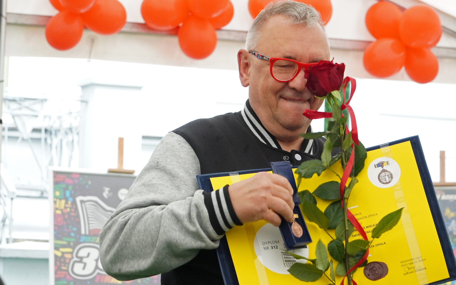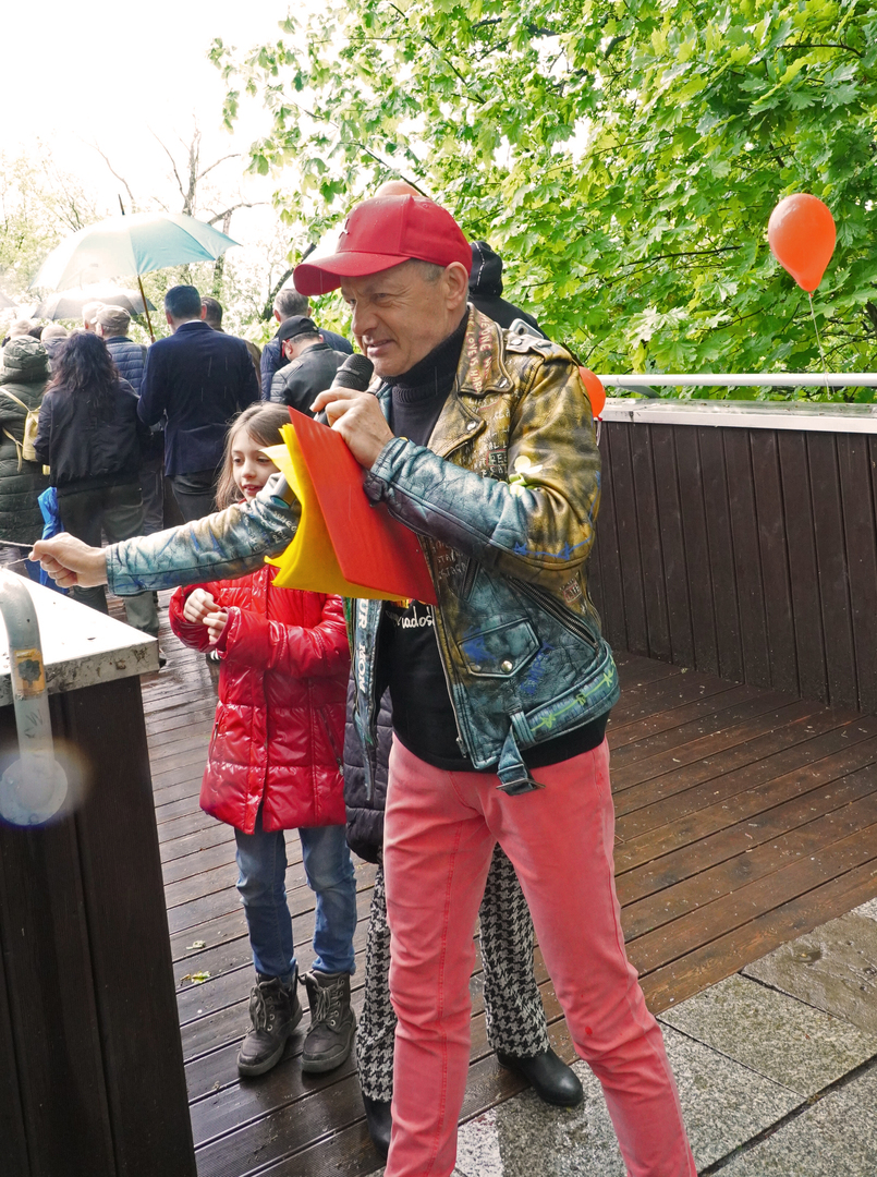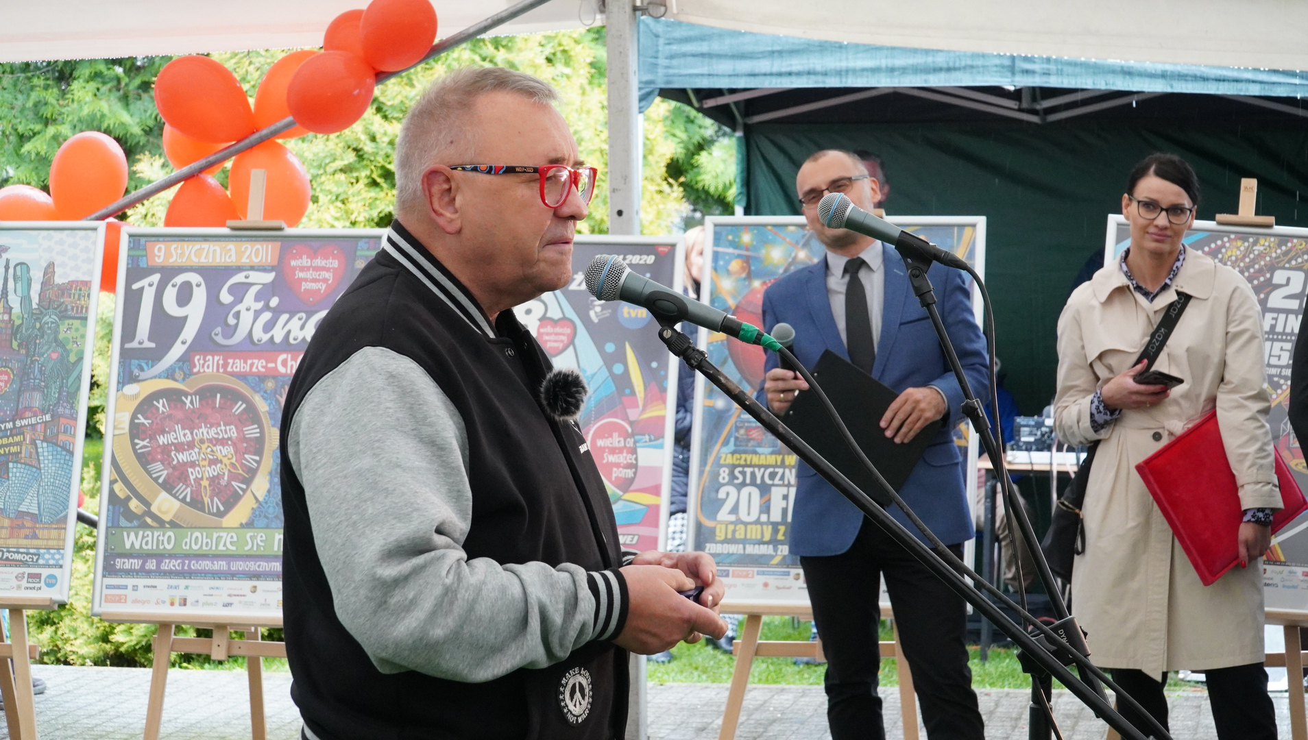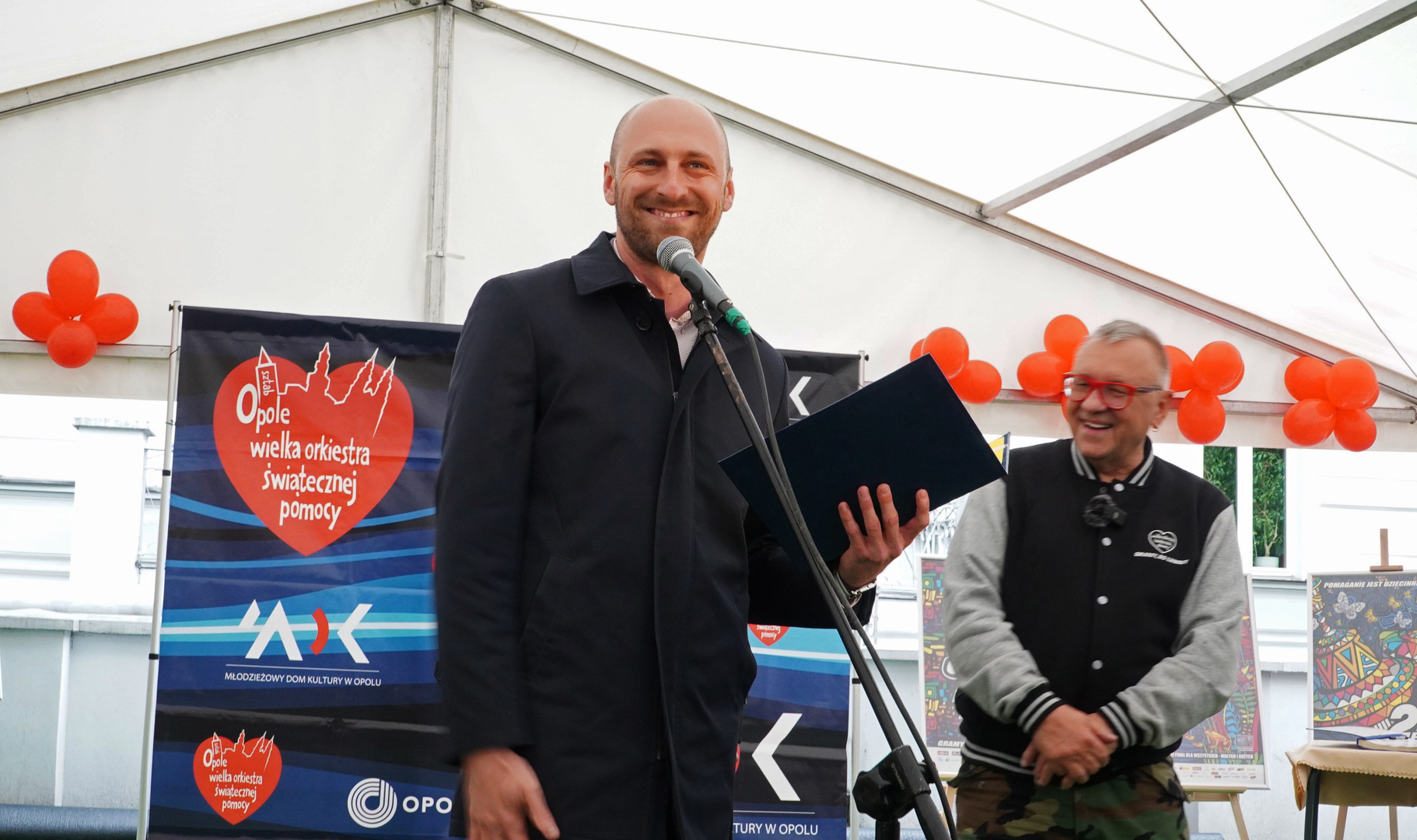Wizyta szefa WOŚP w Opolu z okazji nadania przez Radę Miasta Opola odznaki honorowej "Za Zasługi dla Miasta Opola" Fundacji Wielka Orkiestra Świątecznej Pomocy (17 maja 2023, Mostek im. WOŚP i park MDK)