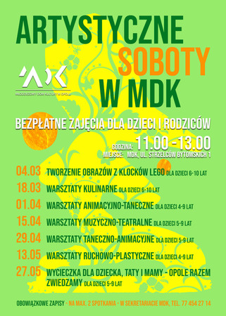 bezpłatne zajęcia dla dzieci w wieku 6-10 lat i ich rodziców / obowiązkowe zapisy w sekretariacie MDK, tel. 77 454 27 14 w. 31