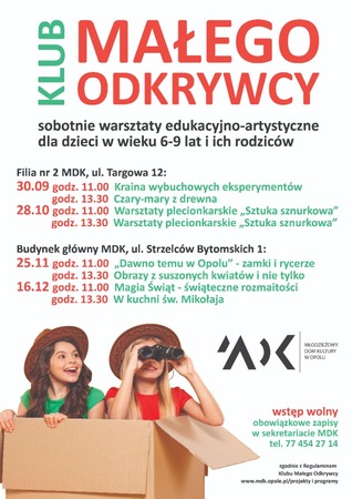 warsztaty edukacyjno-artystyczne dla dzieci w wieku 6-9 lat i ich rodziców / miejsce: budynek główny MDK, ul. Strzelców Bytomskich 1 / obowiązkowe zapisy w sekretariacie MDK, tel. 77 454 27 14 w. 31